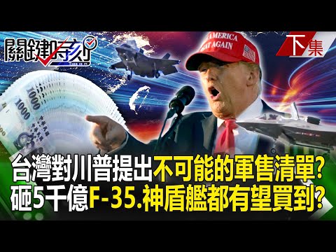 【關鍵時刻下集】20241112 台灣對川普提出「不可能的軍售清單」? 砸5千億「買高科技武器」F-35、神盾艦都有望買到?|劉寶傑